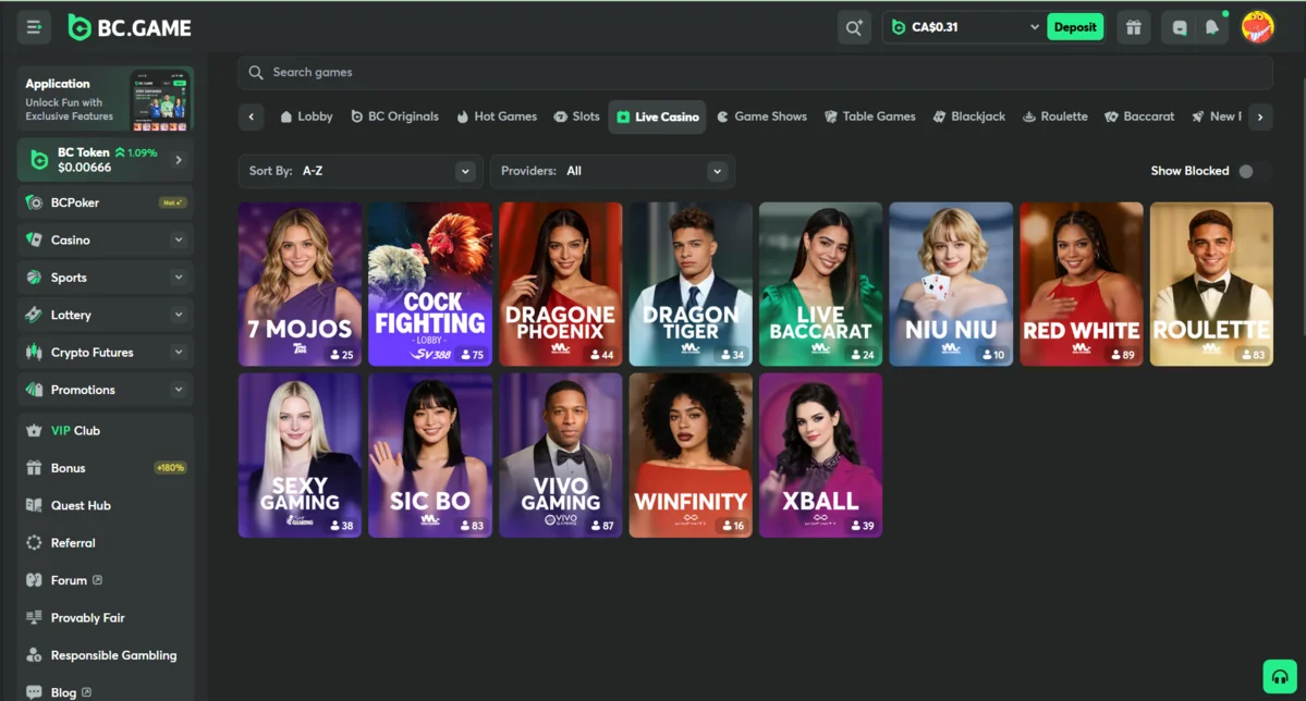 BC Game offers a Sexy Gaming lobby, which is a live-casino environment based around dealers in provocative, minimal attire. It’s designed as an adult-oriented twist on standard live-dealer games, appealing to players who prefer a more visually suggestive atmosphere.