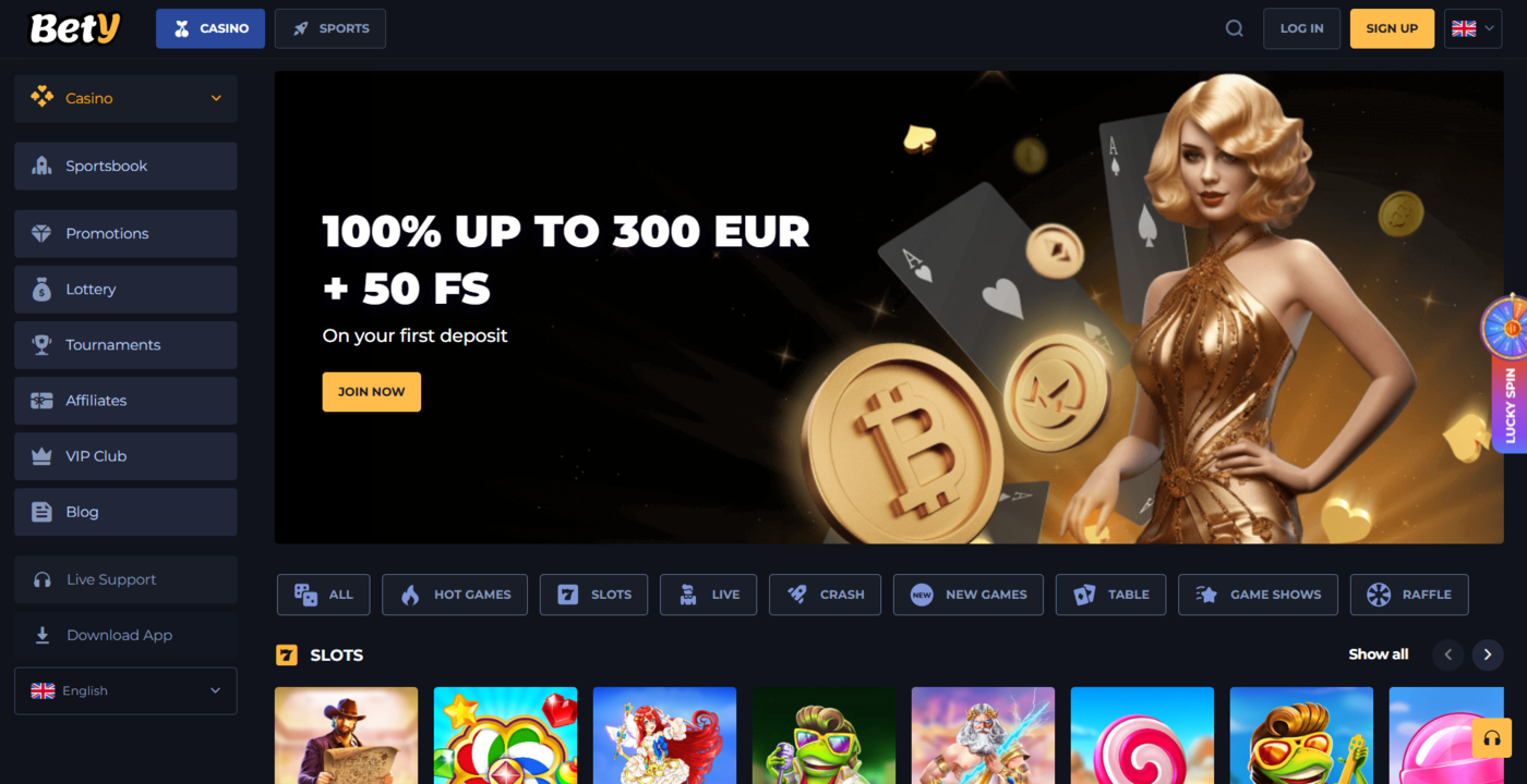 Bety Casino is a new online casino launched in 2024 that combines a massive gaming library with modern cryptocurrency integration. The platform supports both fiat and crypto payments, and players can even purchase crypto directly on the site. With over 10,000 games, an integrated sportsbook, exclusive crash and instant-win titles, and a dedicated mobile app, Bety Casino is designed for a wide range of players.