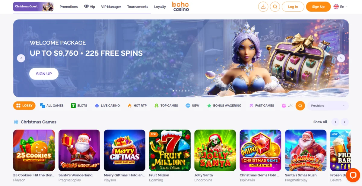 - High Roller First Deposit: 125% up to €5,000 (or crypto equivalent) + 100 Free spins (Bonus Code: BOHO)