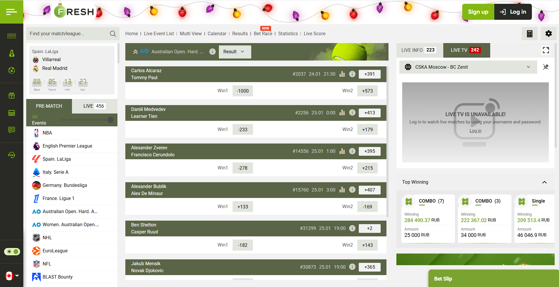 Not only that, Fresh Casino has also ensured that bettors can place wagers on markets both pre-match and in-play. We found the layout of the sportsbook to be a little confusing and hard to navigate at first. That said, there is a Bet Race Blizzard promotion that helps bettors win big with free bets while keeping the excitement alive.