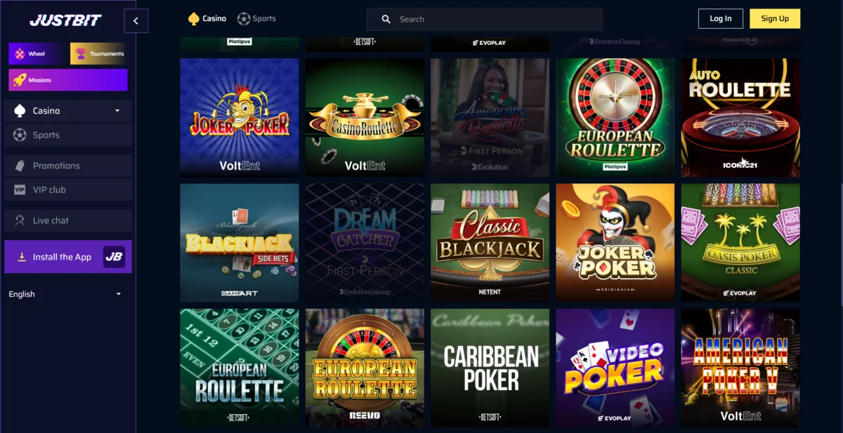 JustBit doesn’t have a dedicated table games section in the main menu, so players can get a little bit confused when searching for these games. But here is the good news: the site offers hundreds of classic casino games with multiple variants of blackjack, poker, roulette, and baccarat. They also offer video poker.