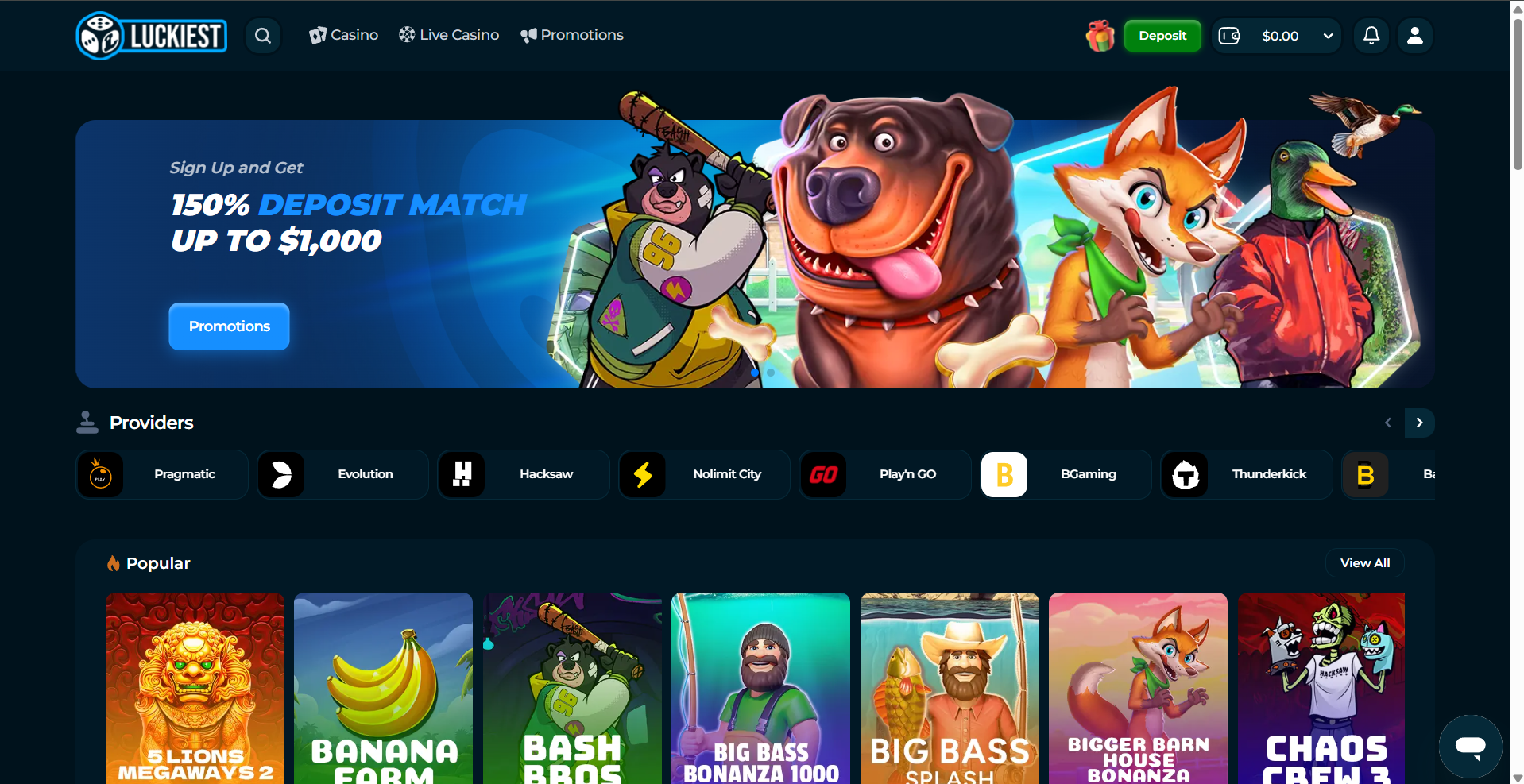Luckiest supports both cryptocurrency and fiat payments, giving players the best of both worlds.