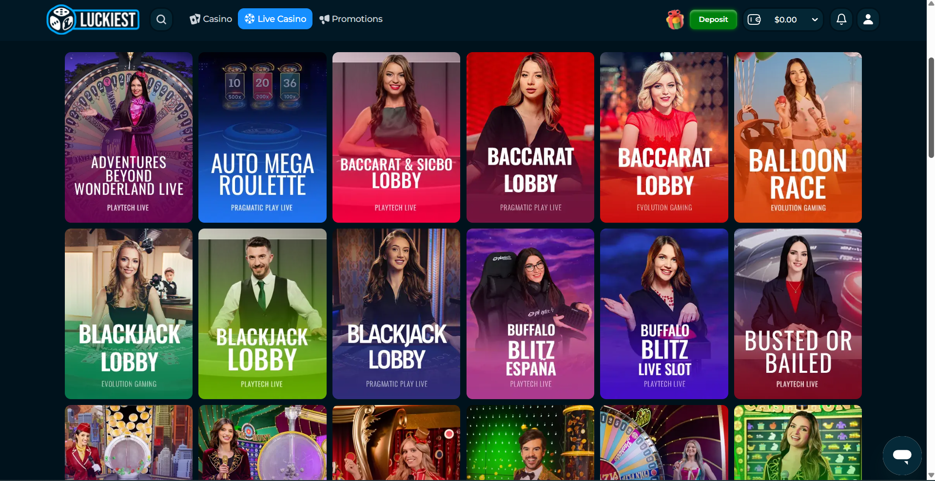 Luckiest doesn’t have a sportsbook, but its casino selection more than compensates. The platform offers thousands of games neatly organized into:
