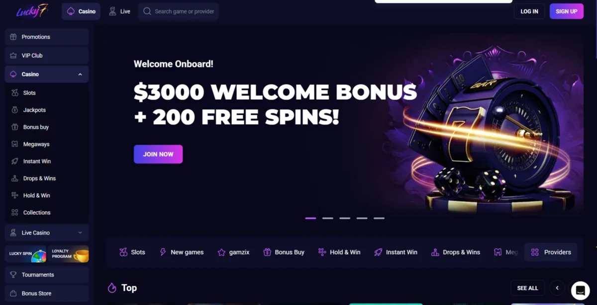 Lucky7Even Casino is a visually stunning and unique online casino with over 5,000 games. A recognized gaming body licenses it, so it is safe and secure to play at, and you will be lulled in with the beautiful purple hues of the well-designed site.