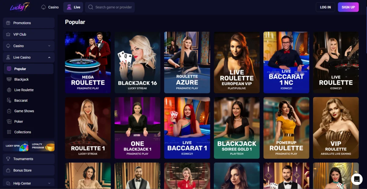 If you like immersive casino action, you are in luck at Lucky7Even, with hundreds of live casino games. The categories are the classic games of Roulette, Poker, Blackjack, Baccarat, and Game Shows.