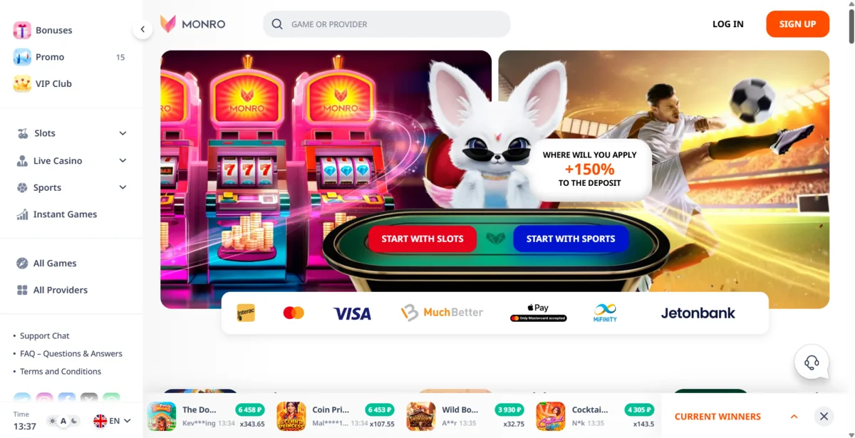 Monro Casino is a fresh online betting platform established in 2023, quickly making its mark with a modern design, solid game variety, and a generous rewards system. With over 2000 games from trusted providers, a strong live casino offering, and a focus on both fiat and crypto payments, Monro appeals to a wide range of players. While there are some gaps (such as the absence of virtual table games), the site overall offers a well-rounded experience bolstered by a rewarding VIP program and exciting promotions.