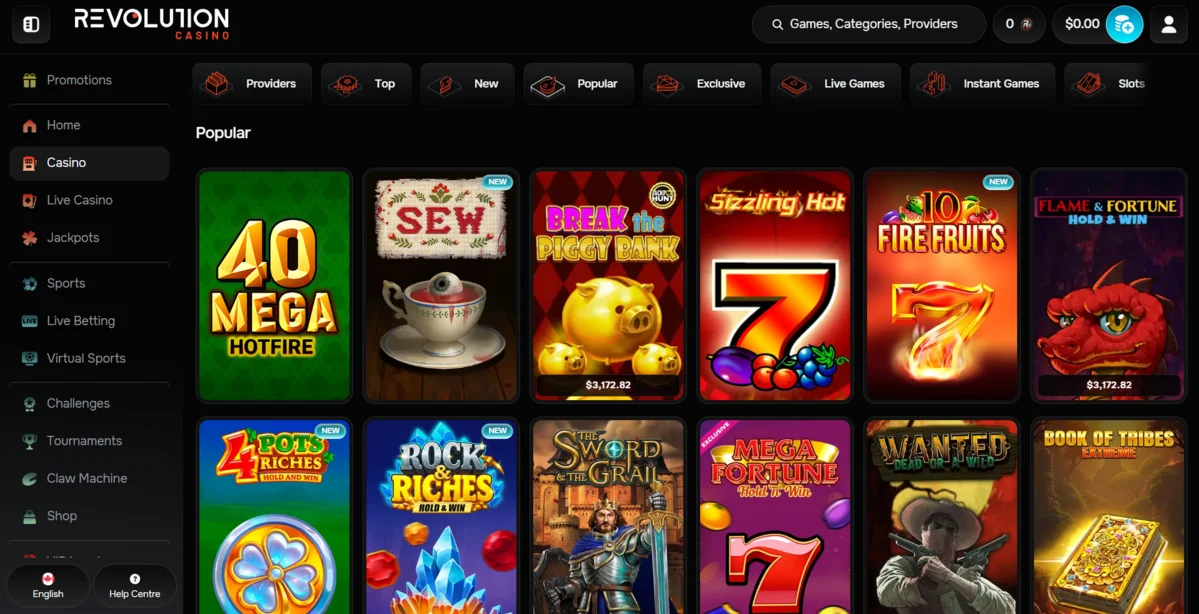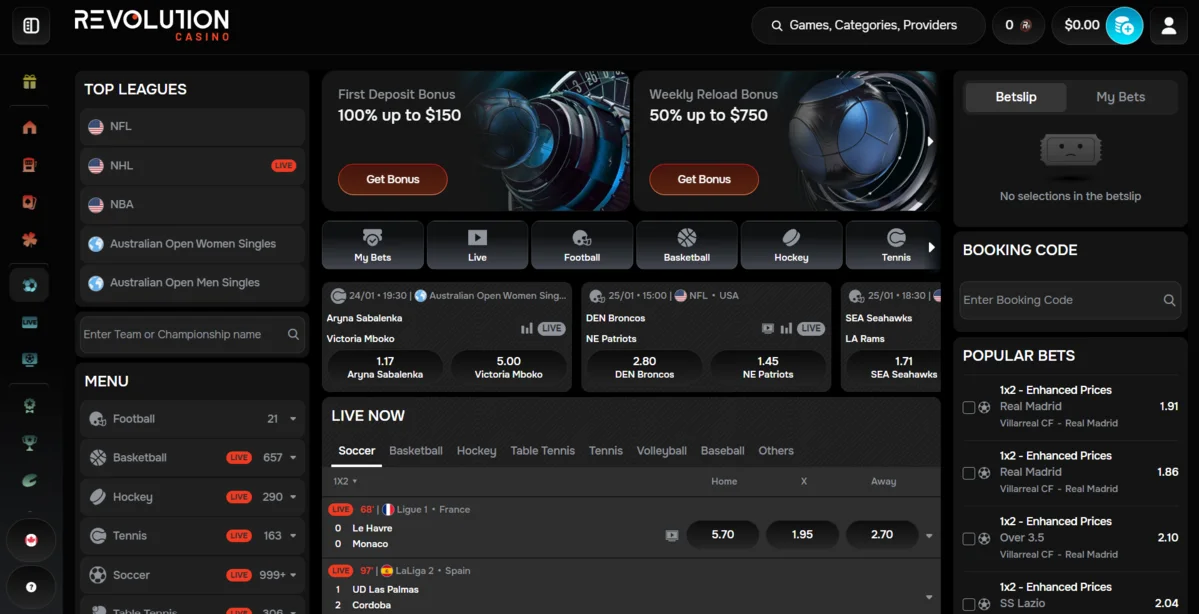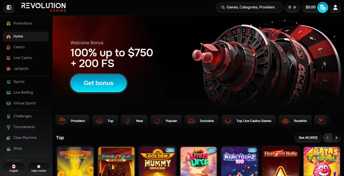 Revolution Casino is a feature-rich gambling platform that combines a large casino game library with a fully integrated sportsbook, making it suitable for players who like to switch between slots, live dealer games, and sports betting under one roof. The site places a strong emphasis on promotions, offering separate welcome bonuses for casino players and sports bettors, alongside frequent reloads, cashback deals, tournaments, and VIP-only rewards.