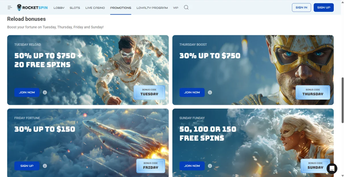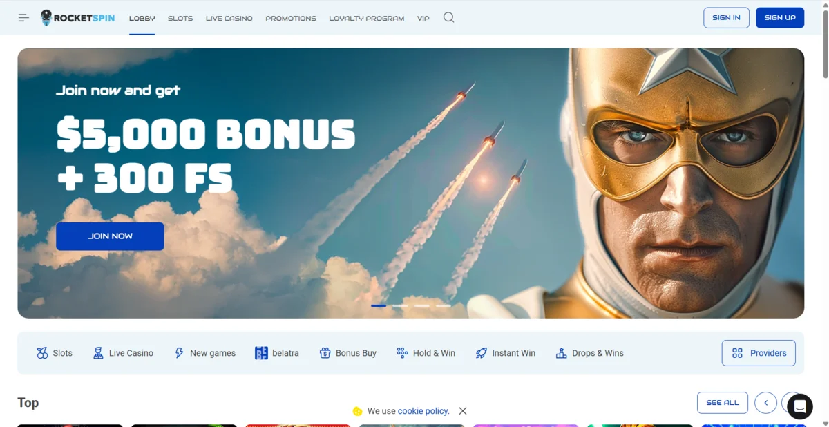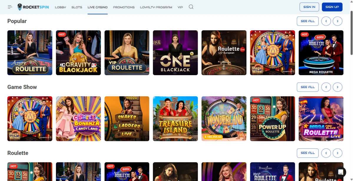 Get ready to blast off at RocketSpin online casino, which has over 3,000 games and launched in 2024. While spins is in the title and there are over 2,500 slot tiles there is so much more, including table games and an immersive live casino.