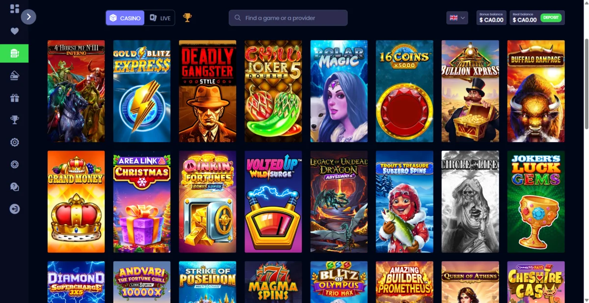 This is not an anonymous crypto casino. Registration requires a full name, address, phone number, and email. During testing, the sign-up process took only a couple of minutes, but players should expect full KYC at some stage, especially before withdrawals. The site supports both CAD payments and cryptocurrency, making it accessible to a wide range of Canadian users who prefer either traditional or digital payment methods.