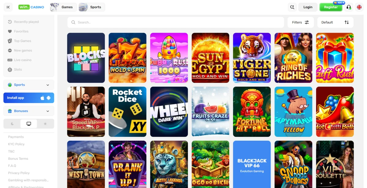 There’s more to a casino than just the headline-grabbing welcome offer, though. Not only do we have to dissect the terms and conditions of such an offer, but we also have to look at everything else Win Casino has in store. Fortunately, Win Casino does indeed deliver in many key areas, from phenomenal crypto support, Provably Fair games, and a fully featured sportsbook.