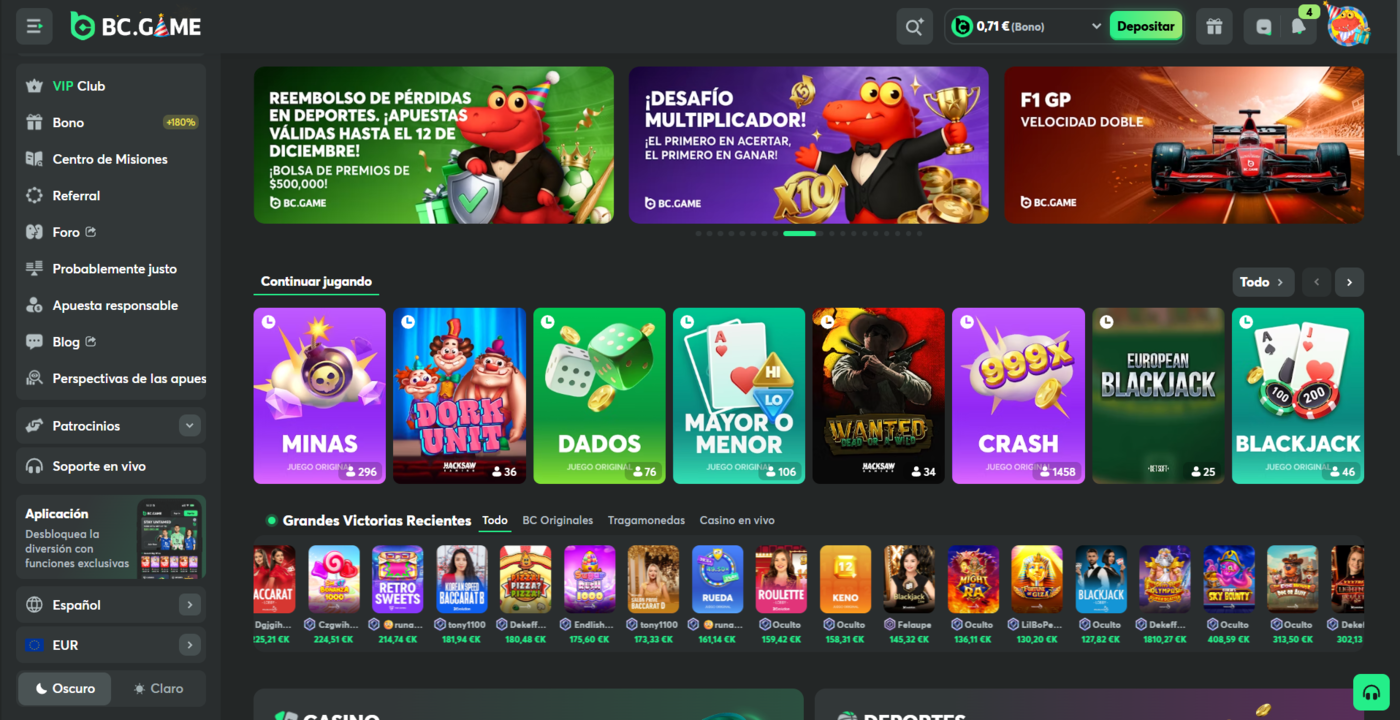 BC Game se ha ganado su popularidad con razón: ofrece una variedad excepcional de juegos (incluidos títulos Provably Fair), admite prácticamente todas las criptomonedas importantes (incluido su propio BC Token), proporciona un excelente bono de bienvenida y cuenta con patrocinios de numerosas figuras conocidas.