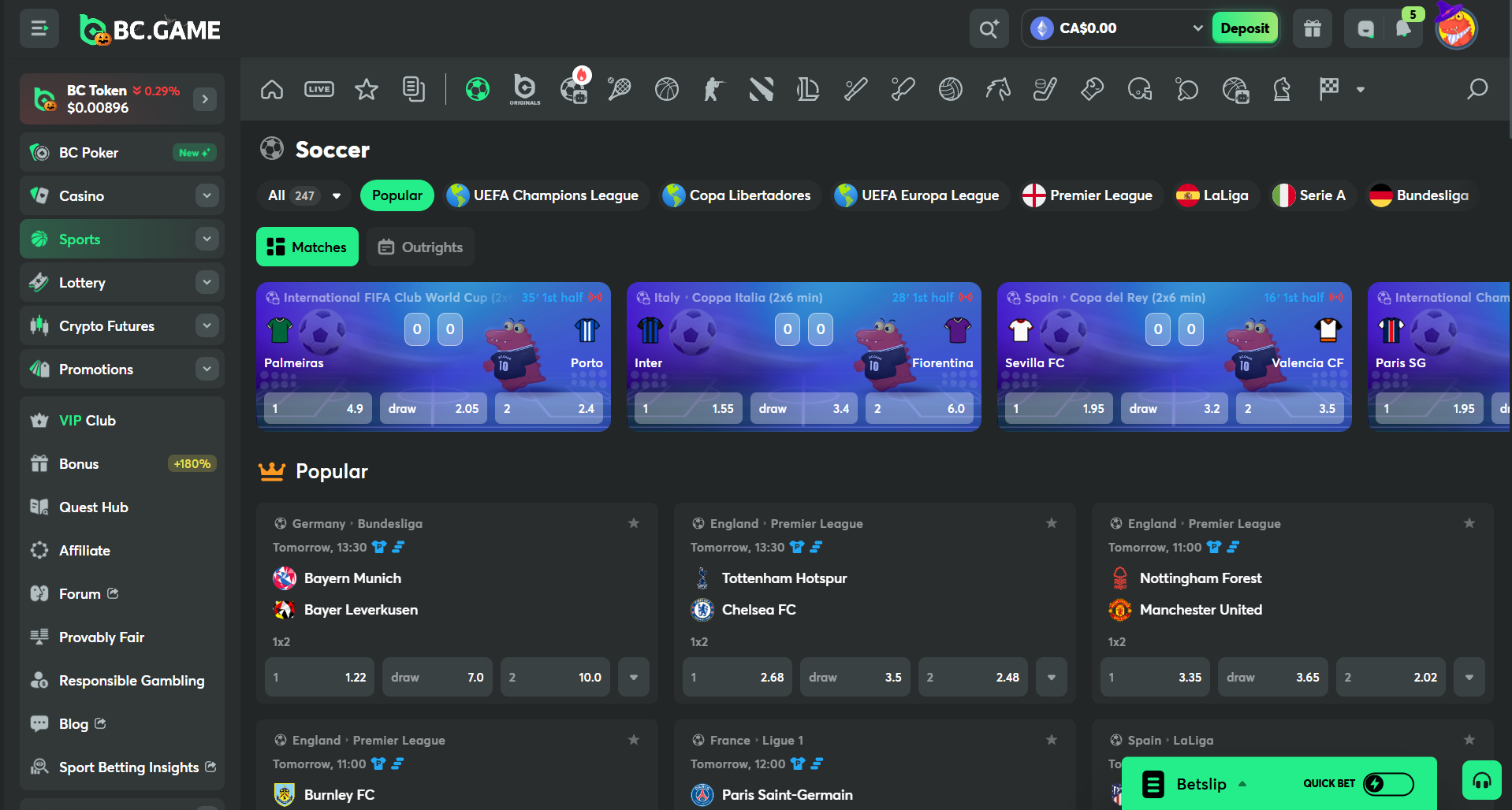 BC Game est surtout populaire pour son énorme offre de bienvenue, sa sélection phénoménale de jeux (y compris des jeux à équité vérifiable), son propre jeton crypto (BC Token) et ses partenariats.