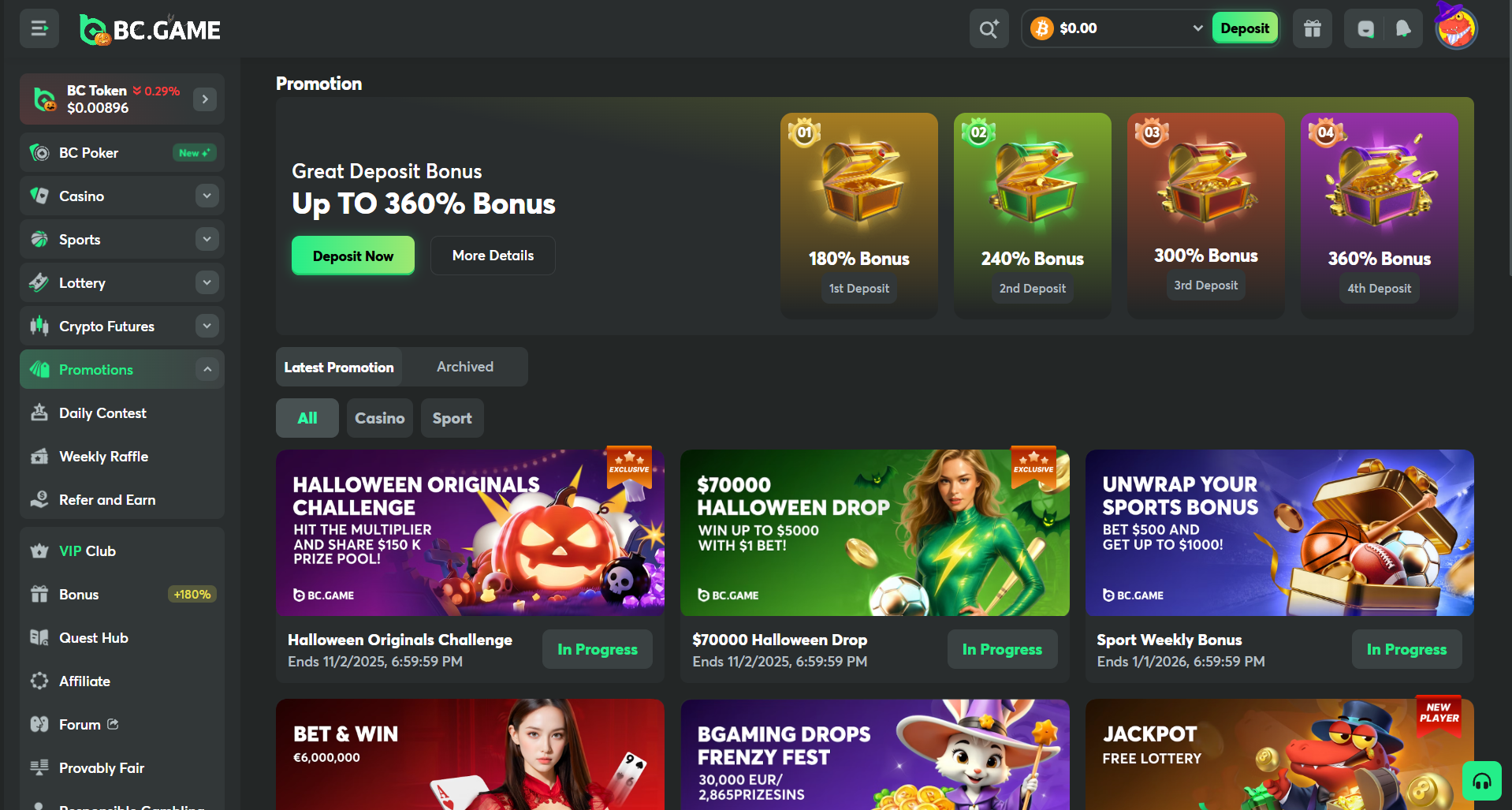 BC Game ne manque pas de bonus pour le casino comme pour les paris sportifs. L’offre de bienvenue est la même pour les deux et récompense les joueurs avec des bonus sur leurs quatre premiers dépôts.