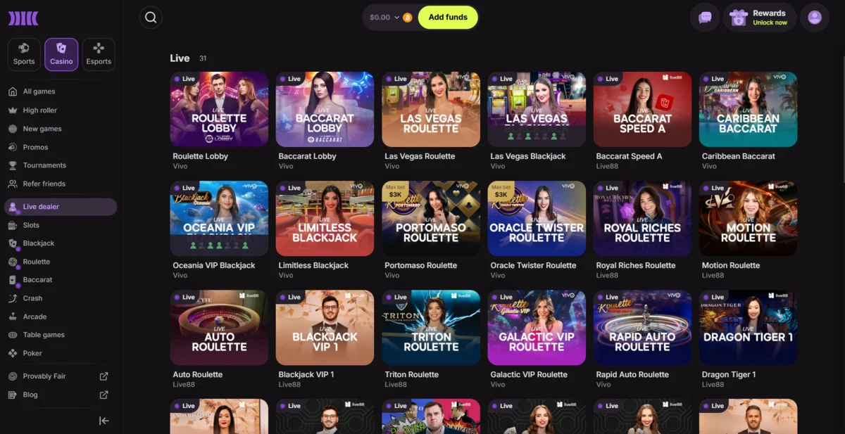 Propulsés par Betsoft et Hacksaw Gaming, disponibles en version virtuelle et avec croupier en direct.