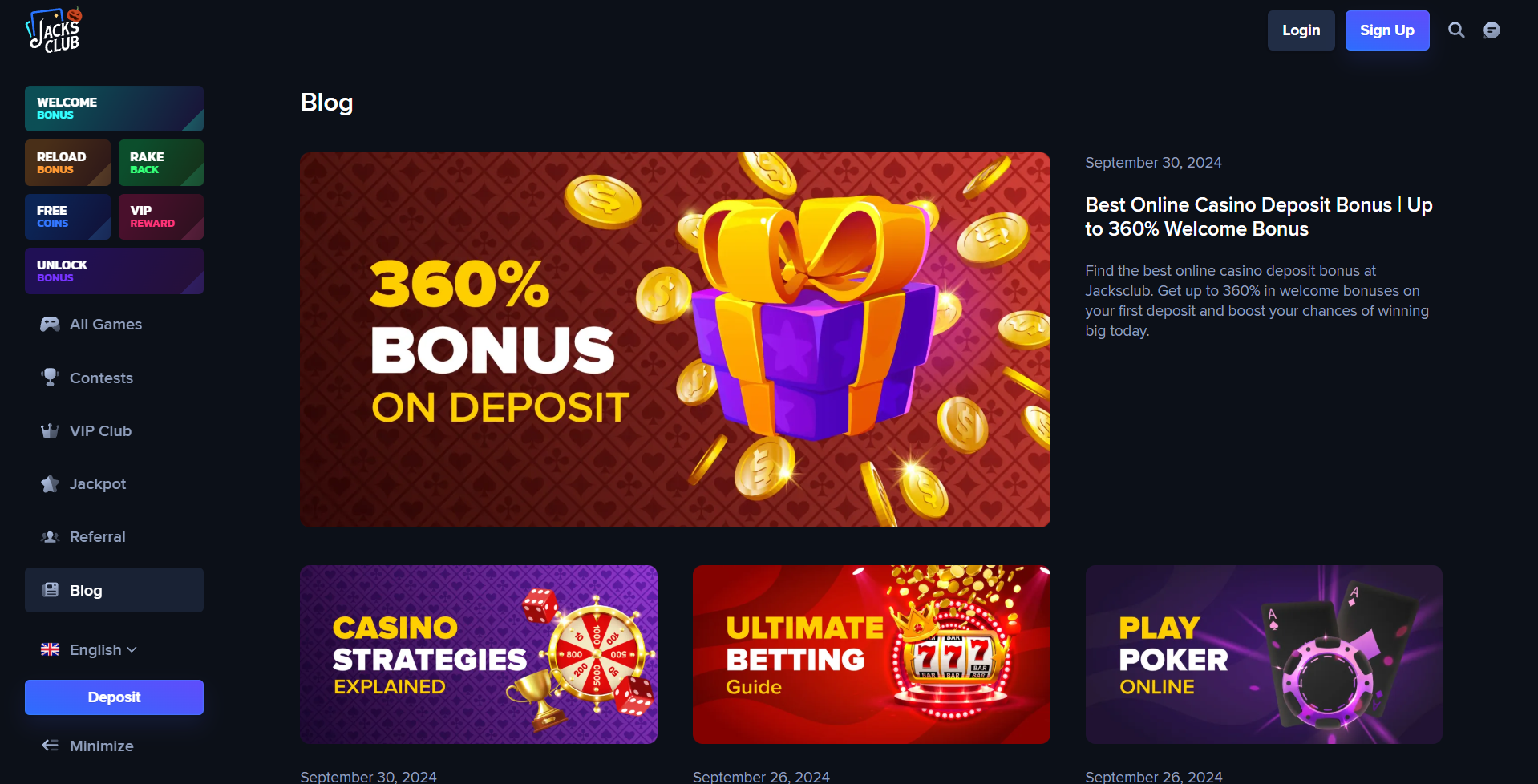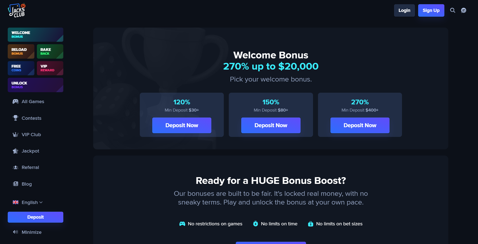 Jacks Club offre une série impressionnante de bonus de dépôt répartis sur les quatre premiers dépôts, donnant aux joueurs de solides raisons de bien commencer. Les bonus sont octroyés sous forme de fonds verrouillés, qui peuvent être débloqués graduellement en jouant.