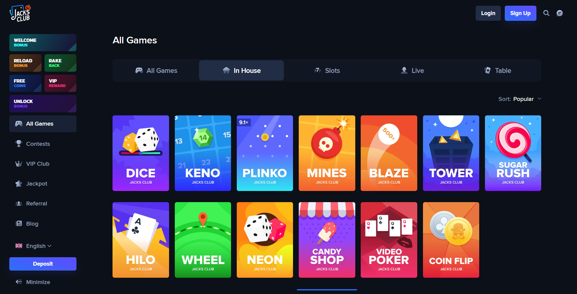 - Jeux exclusifs : Jacks Club Mines, Crash, Plinko et autres — tous vérifiablement équitables