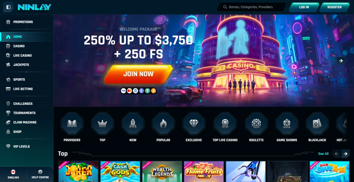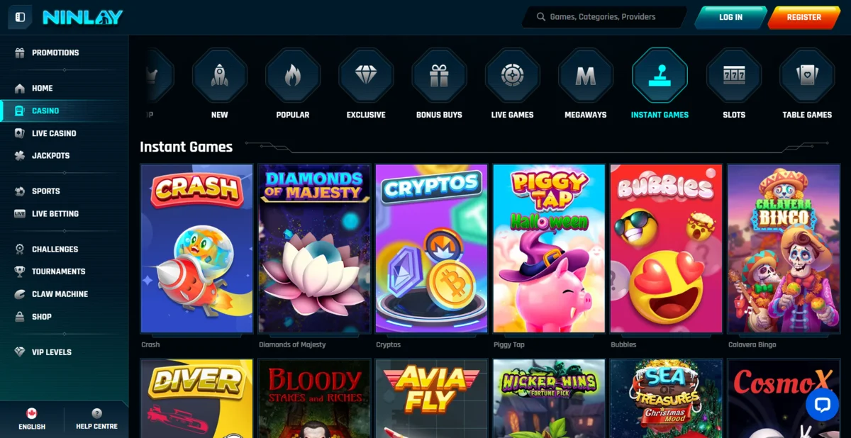Le lobby du casino est l’un des points forts de Ninlay. La navigation est fluide et les filtres incluent :
