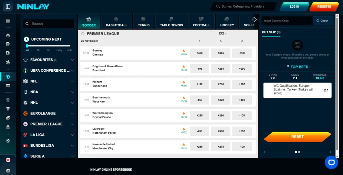 Le sportsbook de Ninlay couvre les principaux sports et championnats, propose des paris sur les esports et inclut une section « Daily Odds Boost ». Les cotes sont raisonnables et la couverture des événements convient aux parieurs occasionnels.