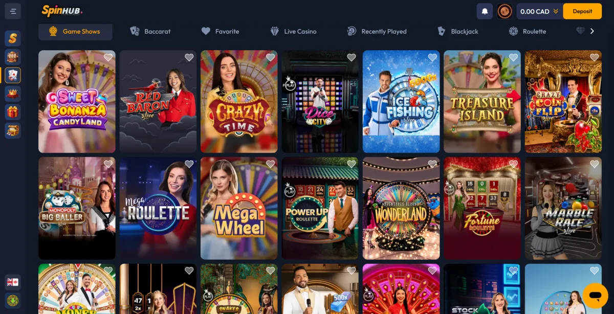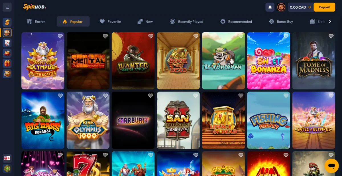 SpinHub’s strongest area is its game library, offering 9000+ titles from 42 providers.
