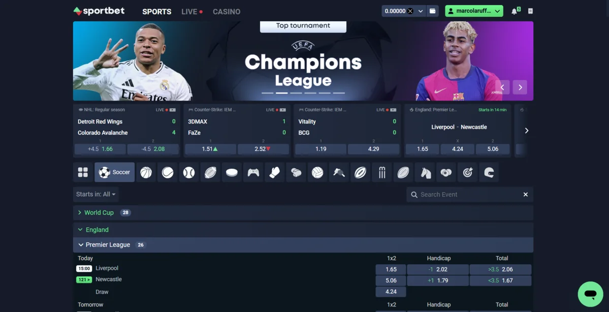 The sportsbook covers a wide range of sports, including esports, and supports both pre-match and live betting. Market depth is solid, but this is where Sportbet.one shows its biggest weakness.