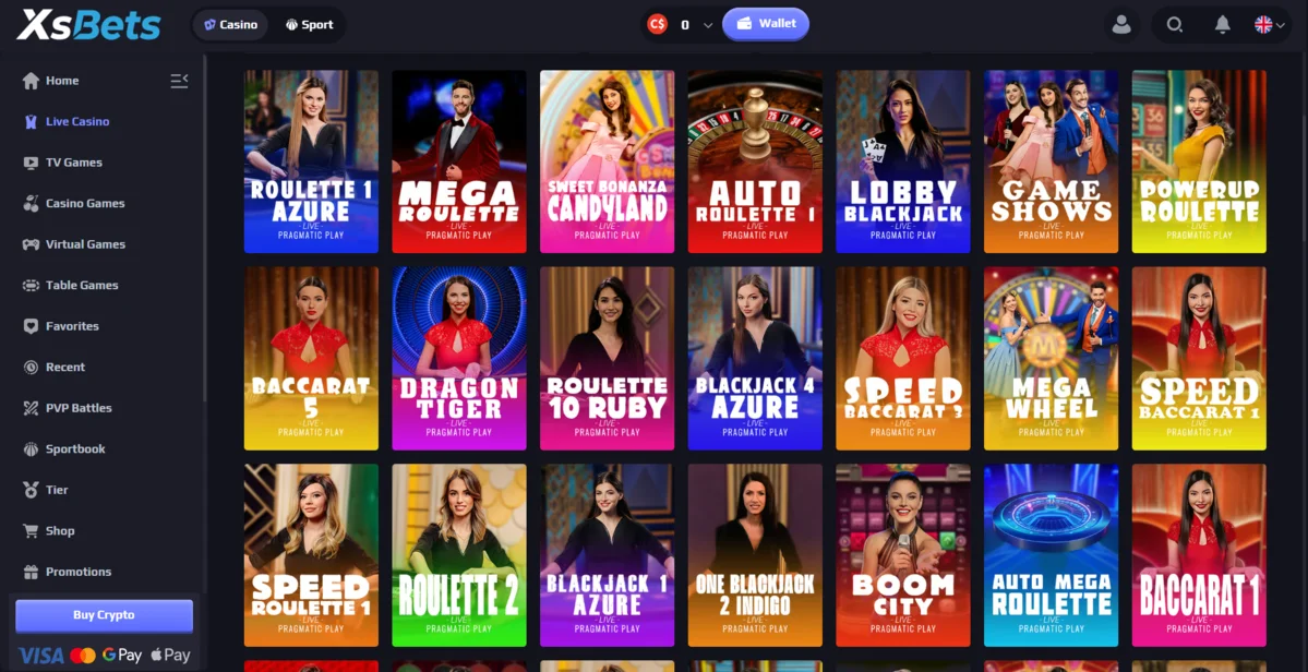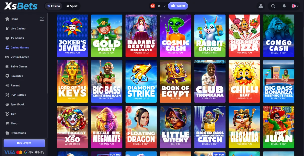 XsBets boasts a large library of 8,000+ games, covering all major categories.